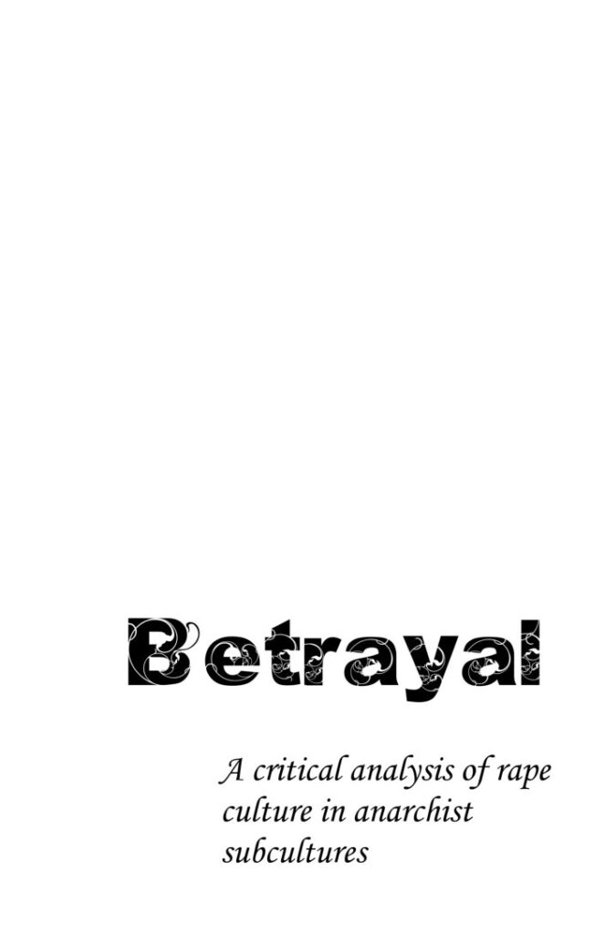Betrayal: A Critical Analysis of Rape Culture in Anarchist Subcultures analyzes the ways in which rape takes place, is talked about, and is dealt with in anarchist subcultures. It looks at how anarchists often seek to “silence” discussion of rape by limiting it and/or preventing it and how those who do take the risk to talk about rape are often attacked and ostracized. There is also a critique of “accountability processes” and how they are often applied. Betrayal is a very critical zine to be sure, but it offers a lot for those who wish to move in new directions.